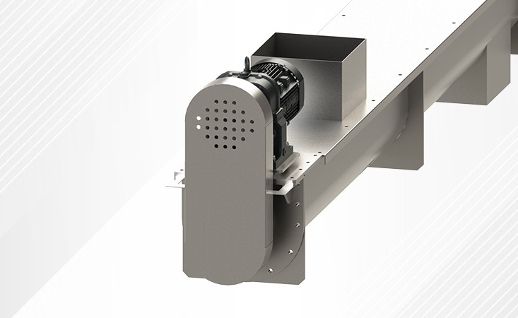 U자형 본체 내부에서 스크류를 회전시켜 수평 및 경사의 조건에서도 무리없이 운반물을 이송시키는 장비입니다